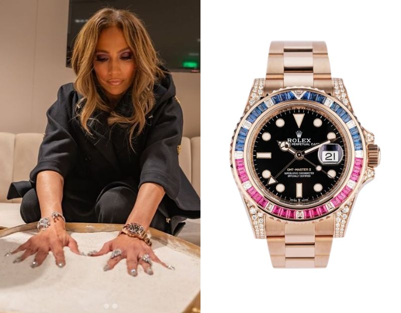 Jennifer Lopez’s Watch – Part 2 November 12, 2025 Jennifer Lopez, an American actress, wears a Rolex GMT-Master II Ref. 126755SARU. Jennifer Lopez’s Watch