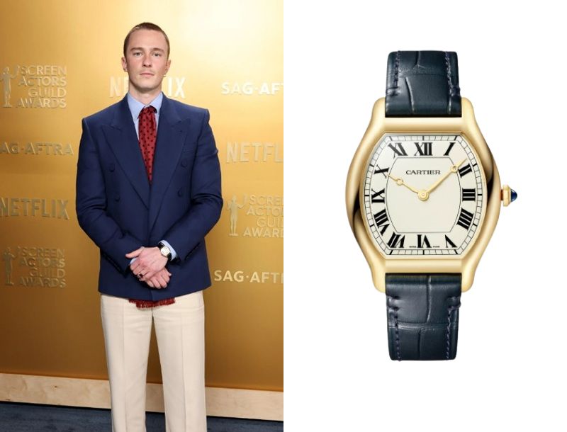 Drew Starkey, an American actor, wears a Cartier Tortue Ref. WGT00006.