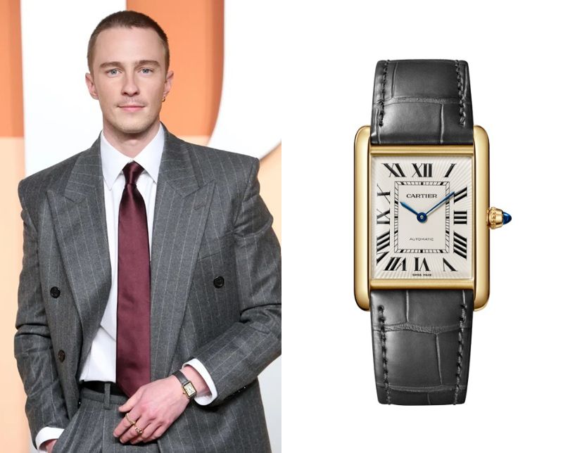 Drew Starkey’s Watch October 29, 2025 Drew Starkey, an American actor, wears a Cartier Tank Louis Cartier Ref. CRWGTA0357.