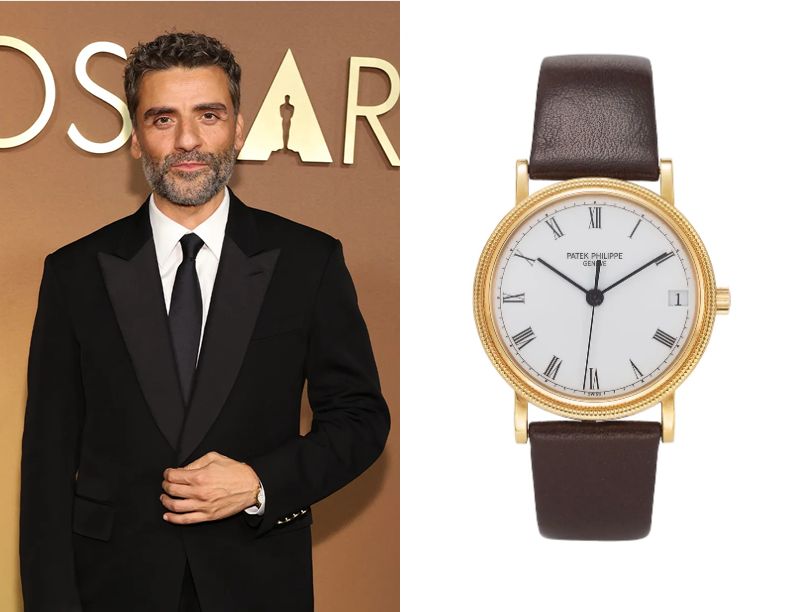 Oscar Isaac, an American actor, wears a Patek Philippe Calatrava Ref. 3802J.