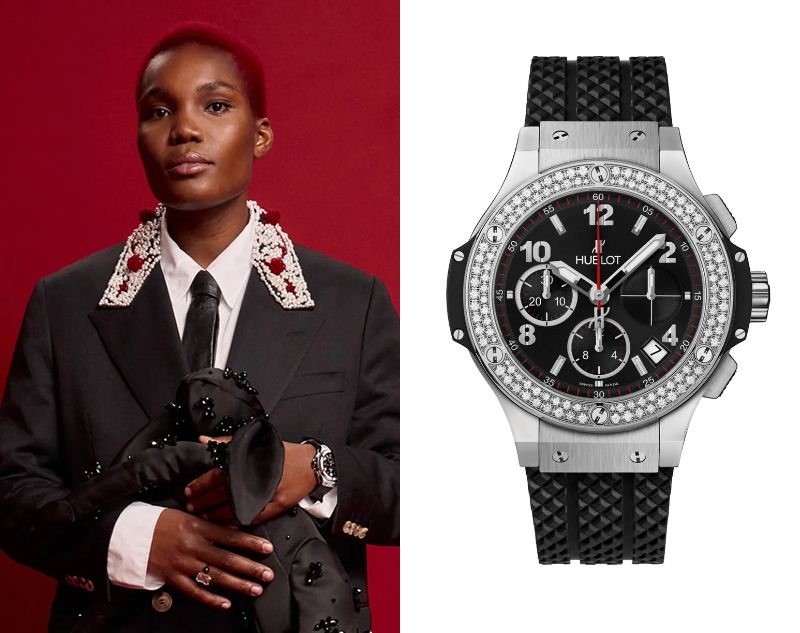 Arlo Parks, a British singer-songwriter, wears a Hublot Big Bang 41 Ref. 341.SX.130.RX.114.