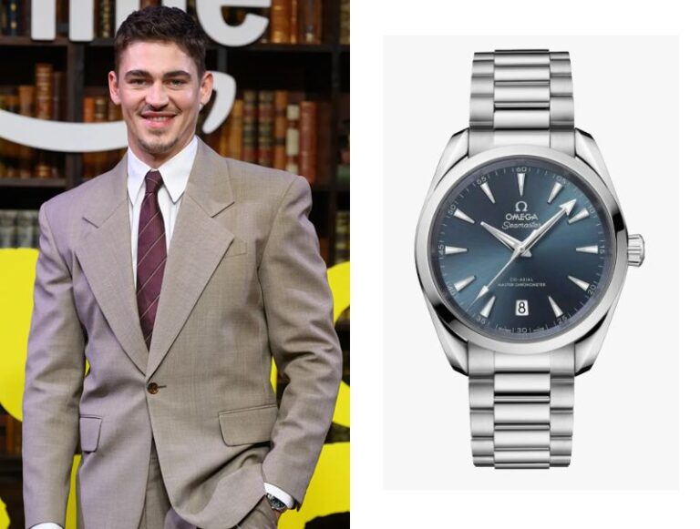 Hero Fiennes Tiffin, a British actor and film producer, wears an Omega Seamaster Aqua Terra 150M Ref. 220.10.41.21.02.001.