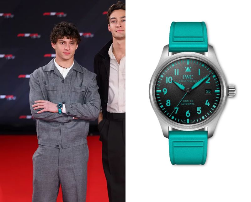 Andrea Kimi Antonelli, an Italian racing driver from Bologna, wears an IWC Pilot’s Watch Chronograph 41 Edition Mercedes-AMG Petronas Formula One Team Ref. IW388108.