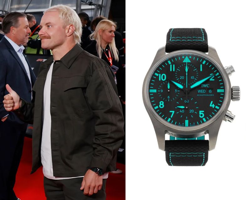 Valtteri Bottas’ Watch November 21, 2025 Valtteri Bottas, a Finnish racing driver from Nastola in the Päijät-Häme region, wears an IWC Pilot’s Watch Chronograph 41 Mercedes-AMG Petronas Formula One Team Edition Ref. IW388108.