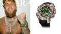 Jake Paul, an American YouTuber, internet celebrity, actor, and professional boxer, wears a Jacob & Co. Bugatti Chiron Rose Gold.