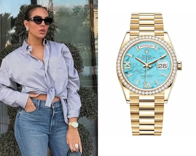 Georgina Rodríguez’s Watch November 25, 2025 Georgina Rodríguez, a Spanish-Argentine social media personality and model, wears a Rolex Day-Date 36 Ref. 128348RBR Turquoise.