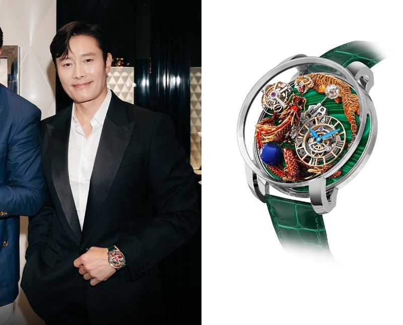 BamBam, a Thai singer and member of the boy group GOT7, wears a Jacob & Co Astronomia Dragon Red Dragon & Tiger.