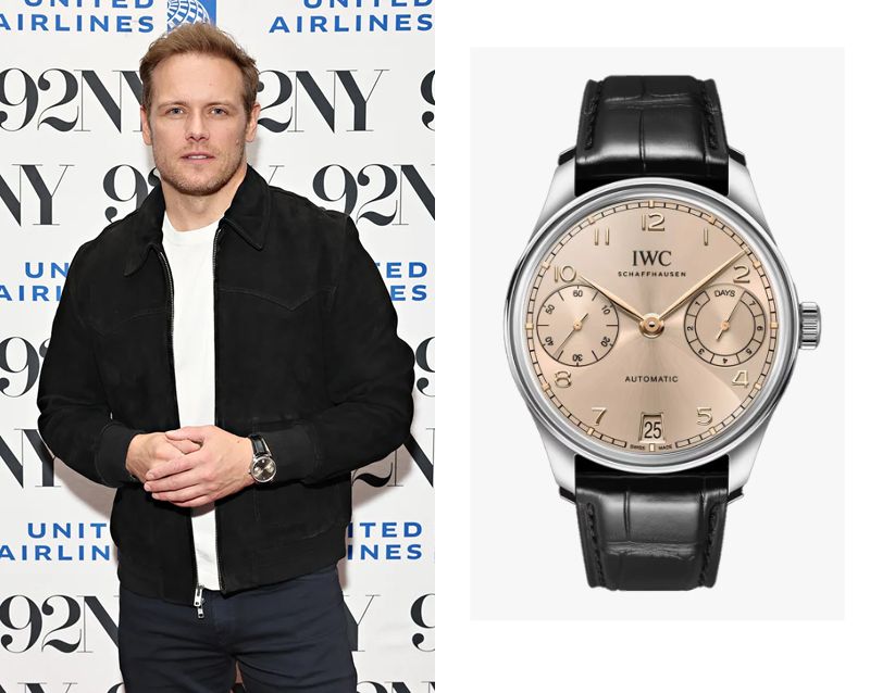Sam Heughan’s Watch December 4, 2025 Sam Heughan, a Scottish actor, wears an IWC Portugieser Automatic 42 Ref. IW501705.