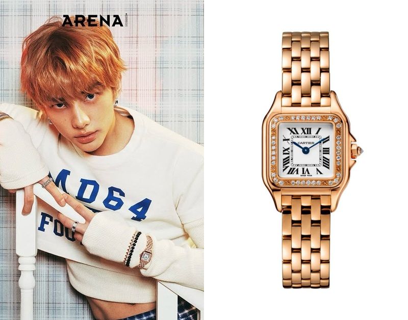 Hyunjin, a member of the South Korean group Stray Kids, wears a Cartier Panthère de Cartier.