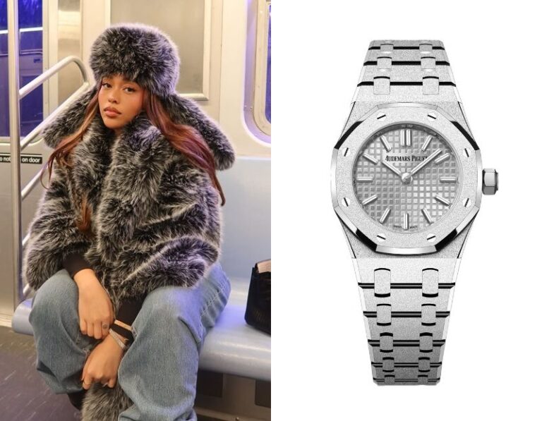 Jordyn Woods’ Watch – Part 3 December 15, 2025 Jordyn Woods, an American reality television personality who appeared on Life of Kylie, wears an Audemars Piguet Royal Oak Mini Frosted Gold Quartz 23mm Ref. 67630BA.GG.1312BA.01. Jordyn Woods’ WatchJordyn Woods’ Watch – Part 2