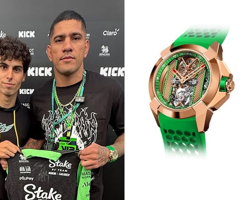 Alex Pereira’s Watch December 24, 2025 Alex Pereira, a Brazilian mixed martial artist, wears a Jacob & Co. Epic X Bridges Rose Gold Green.