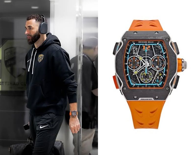 Karim Benzema, a French footballer from Lyon, wears a Richard Mille RM 65-01 McLaren.