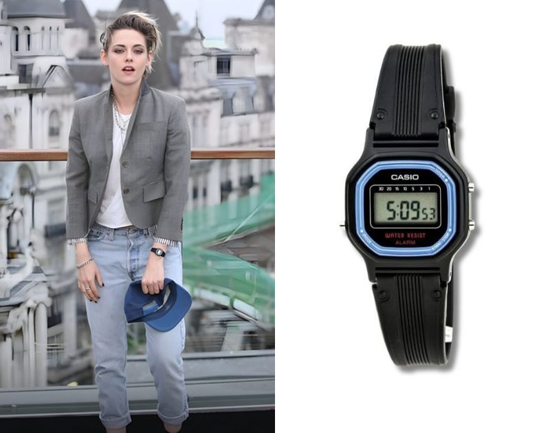 Kristen Stewart, an American actress, wears a Casio LA11WB-1.