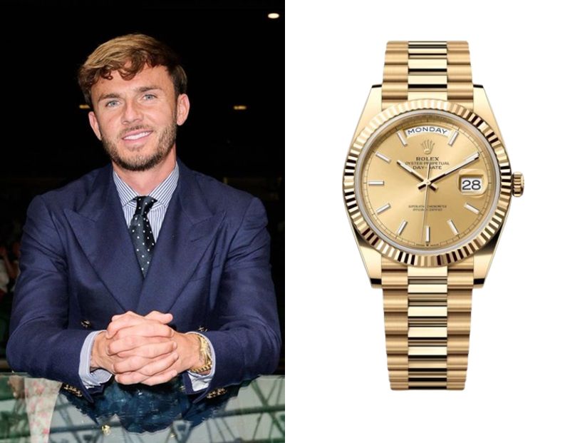 James Maddison’s Watch January 10, 2026 James Maddison, an English professional footballer from Coventry, wears a Rolex Day-Date 36 Oyster Ref. M128238.