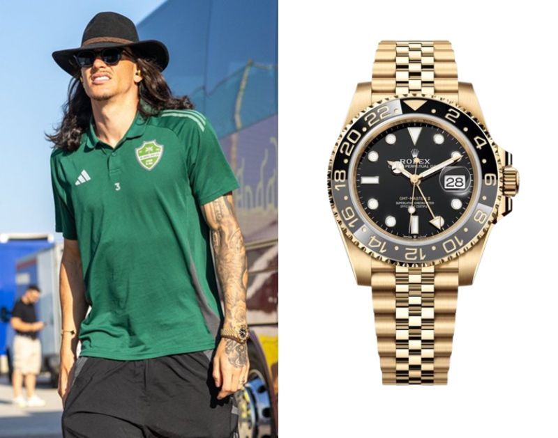 Roger Ibanez, a Brazilian footballer, wears a Rolex GMT-Master II Ref. 126718.