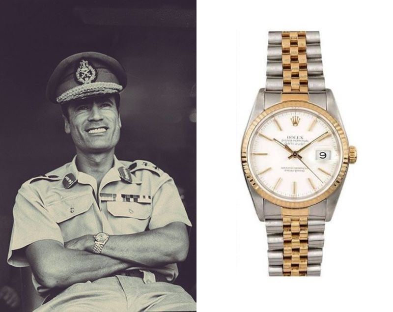 Muammar Gaddafi’s Watch January 12, 2026 Muammar Gaddafi, a former Libyan leader, wears a Rolex Datejust Ref. 16233.