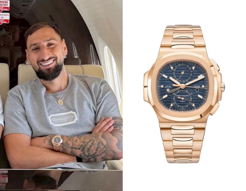 Gianluigi Donnarumma’s Watch – Part 2 January 13, 2026 Gianluigi Donnarumma, an Italian footballer from Castellammare di Stabia, Naples, Campania, wears a Patek Philippe Nautilus Travel Time Chronograph Ref. 5990/1R-001 Rose Gold Blue Dial. Gianluigi Donnarumma’s Watch