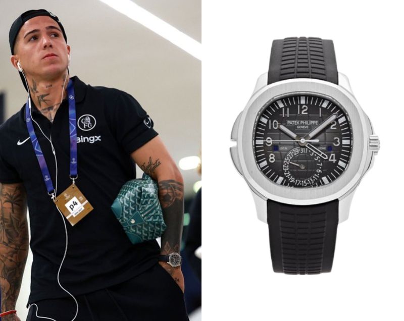 Enzo Fernández’s Watch – Part 2 January 13, 2026 Enzo Fernández, an Argentine footballer from San Martín, wears a Patek Philippe Aquanaut Travel Time Ref. 5164A-001. Enzo Fernández’s Watch