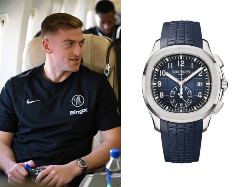Liam Delap’s Watch January 13, 2026 Liam Delap, an English footballer from Winchester, wears a Patek Philippe Aquanaut Chronograph Ref. 5968G-001.