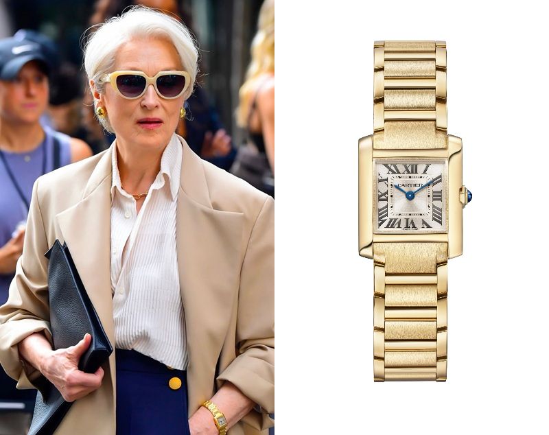 Meryl Streep’s Watch January 14, 2026 Meryl Streep, an American actress, wears a Cartier Tank Française Ref. W50003N2.