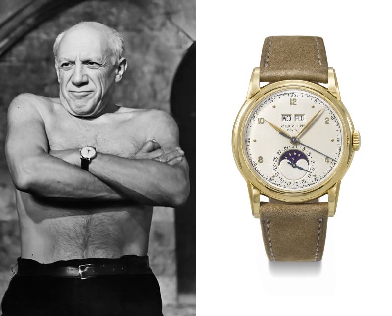 Pablo Picasso, a Spanish painter, wears a Patek Philippe Complicated Watches Ref. 2497.