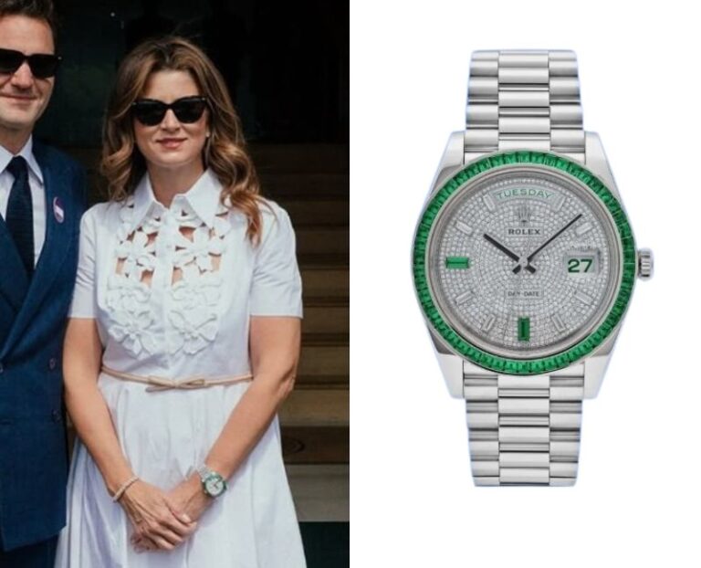Mirka Federer, a Swiss former professional tennis player from Bojnice, Czechoslovakia, wears a Rolex Cosmograph Daytona Ref. 126538TBR.