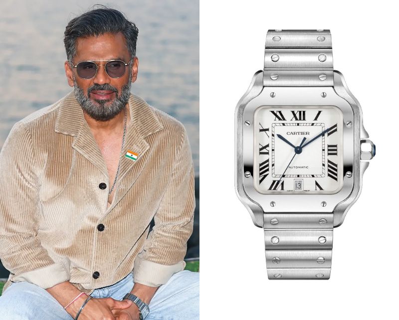Suniel Shetty’s Watch January 17, 2026 Suniel Shetty, an Indian actor, wears a Cartier Santos de Cartier Watch Ref. WSSA0082.