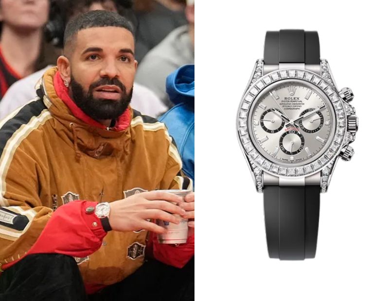 Drake, a Canadian rapper, wears a Rolex Cosmograph Daytona Ref. 126539TBR.