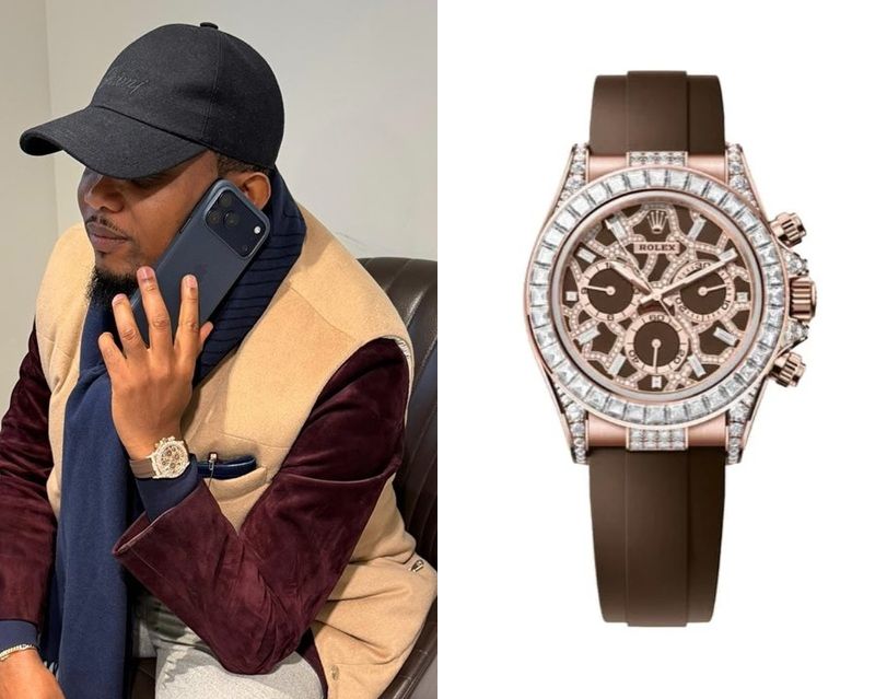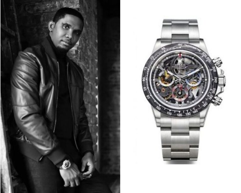 Samuel Eto’o, a former Cameroonian footballer, wears a Rolex Cosmograph Daytona Ref. 126555TBR Giraffe.