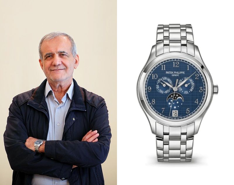 Masoud Pezeshkian’s Watch January 23, 2026 Masoud Pezeshkian, an Iranian president, wears a Patek Philippe Complications Ref. 4947/1A-001.