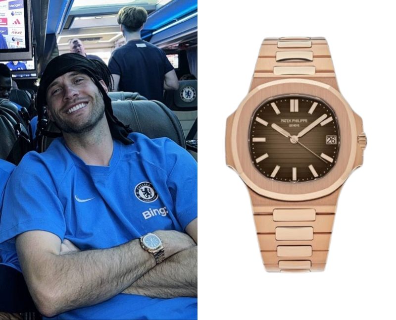 Marcus Bettinelli, an English professional footballer, wears a Patek Philippe Nautilus Ref. 5711/1R-001.