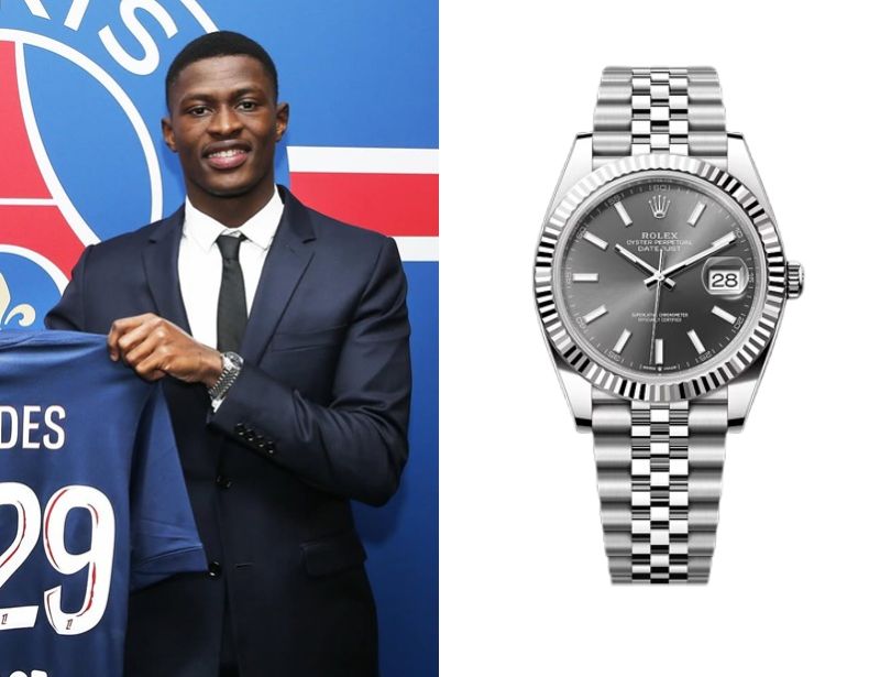 Nuno Mendes, a Portuguese professional footballer, wears a Rolex Datejust 41 Ref. 126334.