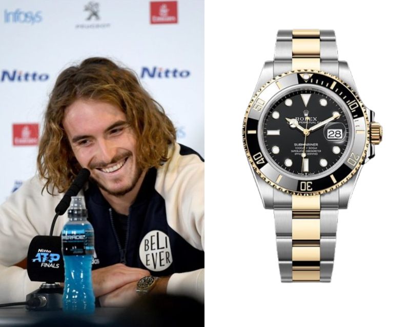 Stefanos Tsitsipas, a Greek professional tennis player, wears a Rolex Submariner Date Ref. 116613LN.
