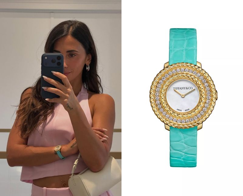 Antonela Roccuzzo’s Watch January 25, 2026 Antonela Roccuzzo, an Argentine influencer, wears a Tiffany & Co. Rope by Tiffany Ref. 75417306.