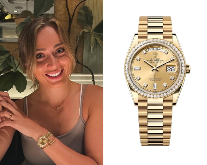 Paula Badosa’s Watch January 27, 2026 Paula Badosa, a Spanish professional tennis player, wears a Rolex Day‑Date 36 Oyster 36 mm yellow gold and diamonds Ref. 128348RBR.