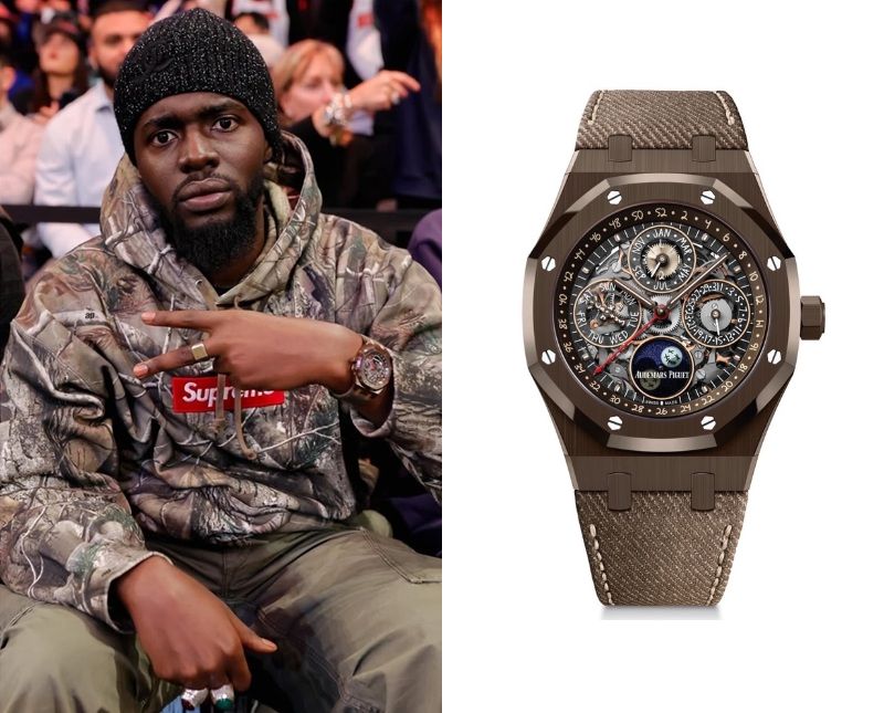 Sheck Wes’ Watch January 28, 2026 Sheck Wes, an American rapper, wears an Audemars Piguet Royal Oak Perpetual Calendar Openworked Cactus Jack Ref. 26585CM.OO.D301VE.01.