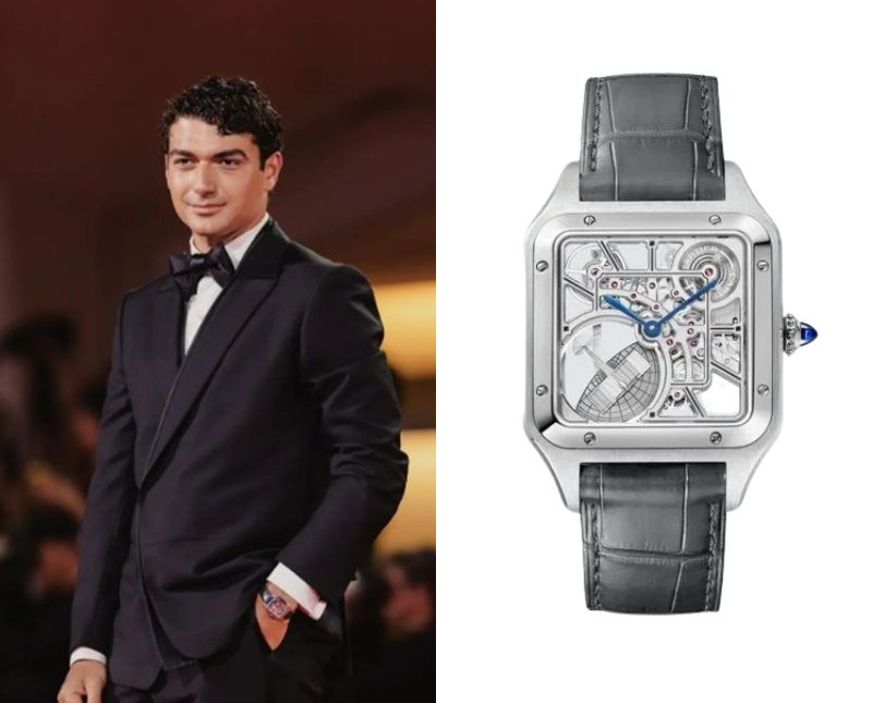 Giacomo Giorgio’s Watch January 28, 2026 Giacomo Giorgio, an Italian actor, wears a Cartier Santos-Dumont Skeleton Watch Large Ref. WHSA0032.
