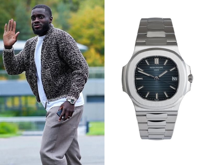 Dayot Upamecano’s Watch January 29, 2026 Dayot Upamecano, a French footballer from Évreux, wears a Patek Philippe Nautilus Ref. 5711/1A-010.