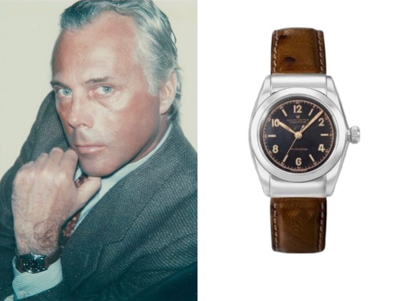 Giorgio Armani, an Italian fashion designer, wears a Rolex Oyster Perpetual Ref. 3065.