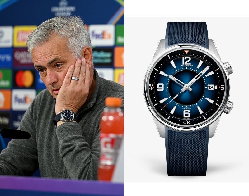 Jose Mourinho, a Portuguese former amateur footballer and current football manager from Setúbal, wears a Jaeger-LeCoultre Polaris Date Ref. Q906868J.