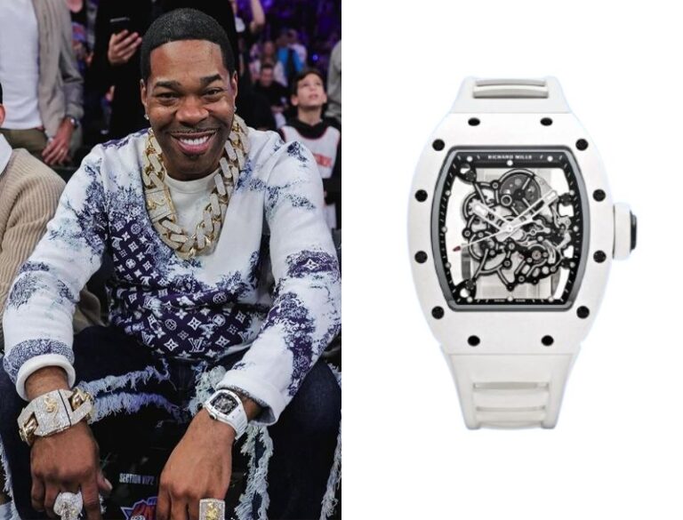 Busta Rhymes’ Watch February 2, 2026 Busta Rhymes, an American rapper, wears an Audemars Piguet Royal Oak Chronograph 41 mm Ref. 26240OR.OO.1320OR.08.