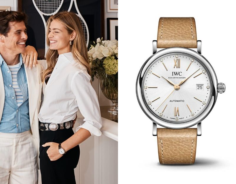 Frederique Brons, a Dutch model, wears a IWC Portofino Ref. IW458601.