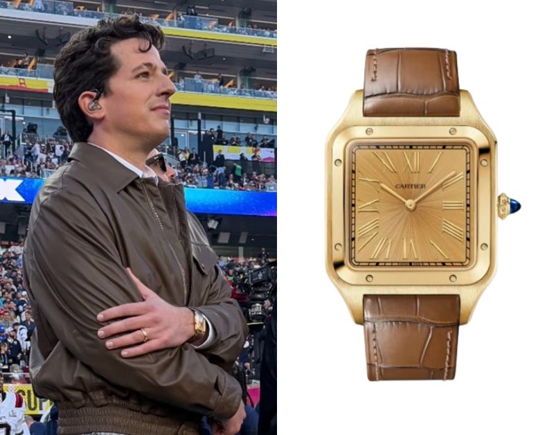 Charlie Puth’s Watch February 9, 2026 Charlie Puth, an American singer-songwriter, wears a Cartier Santos-Dumont Ref. WGSA0111.