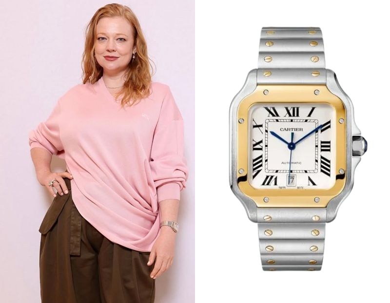 Sarah Snook’s Watch February 12, 2026 Sarah Snook, an Australian actress, wears a Cartier Santos Ref. W2SA0016.