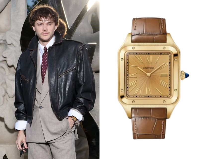 Christopher Briney, an American actor, wears a Cartier Santos Ref. WGSA0111.