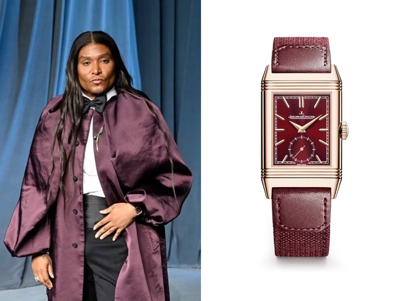 Law Roach, an American fashion stylist, wears a Jaeger-LeCoultre Reverso Tribute Small Seconds Ref. Q397846J.