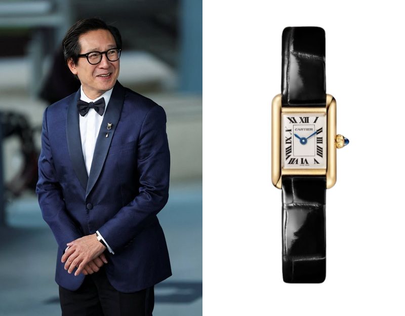Jonathan Ke Quan’s Watch February 13, 2026 Jonathan Ke Quan, an American actor of Chinese-Vietnamese descent, wears a Cartier Tank Louis Watch Ref. WGTA0352.
