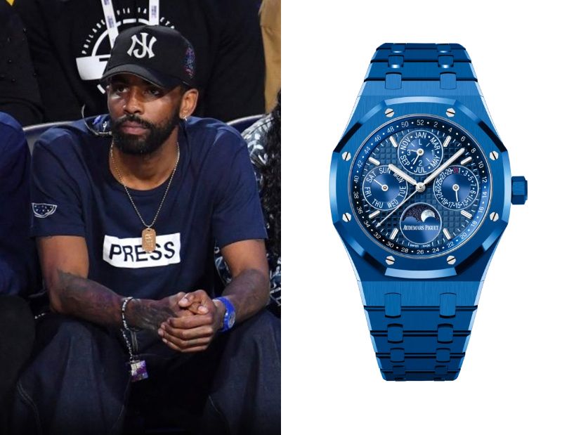 Kyrie Irving, an American professional basketball player, wears an Audemars Piguet Royal Oak Perpetual Calendar Ref. 26579CS.OO.1225CS.01.