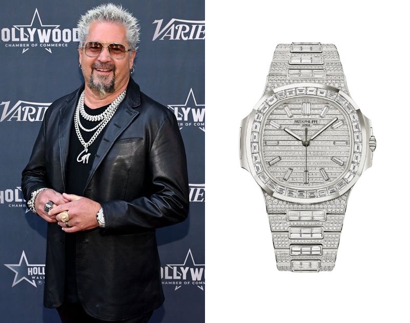 Guy Fieri’s Watch February 17, 2026 Guy Fieri, an American restaurateur, author, and television host, wears a Patek Philippe Nautilus High Jewelry Ref. 5811/1460G-001.