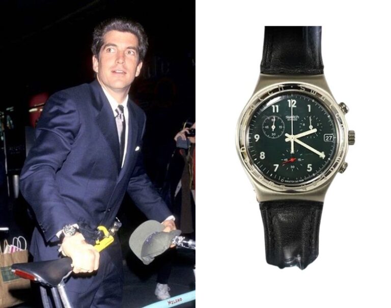 John F. Kennedy Jr., an American lawyer, wears a Timex 1995 Intrepid Reissue Ref. TW2Y05800.